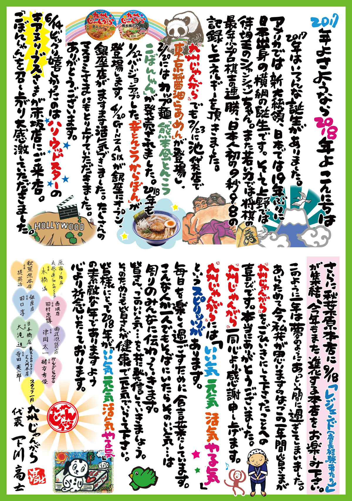 皆様にとっても2018年が「いい気 元気 活気 やる気」の素敵な年でありますよう心より祈念いたしております。